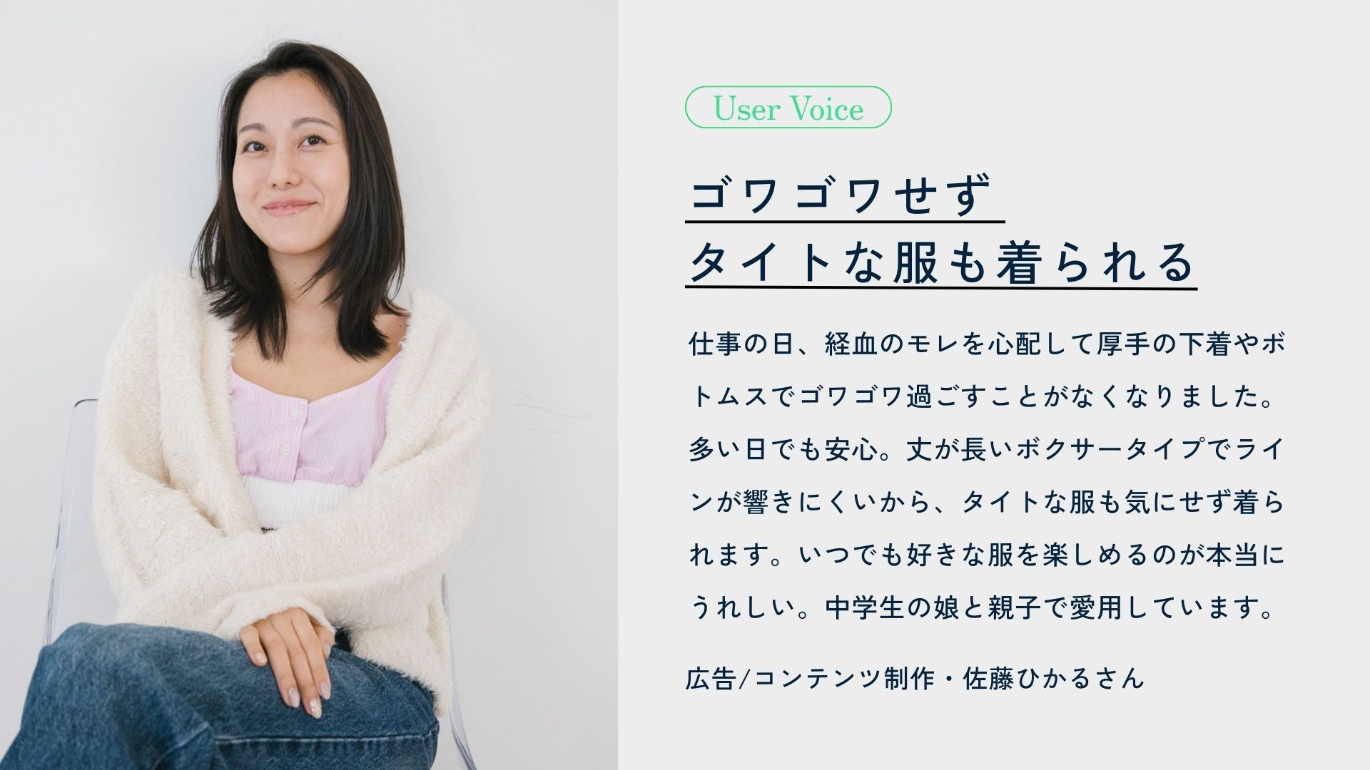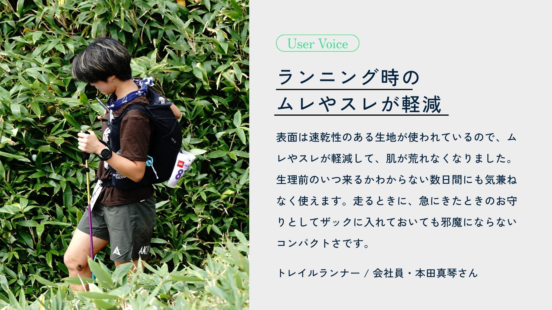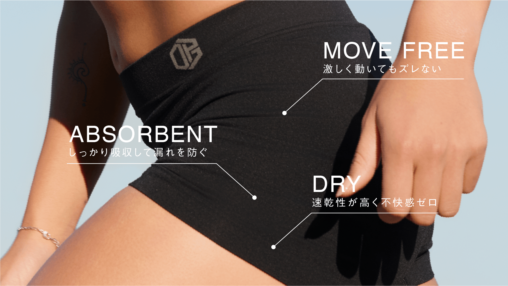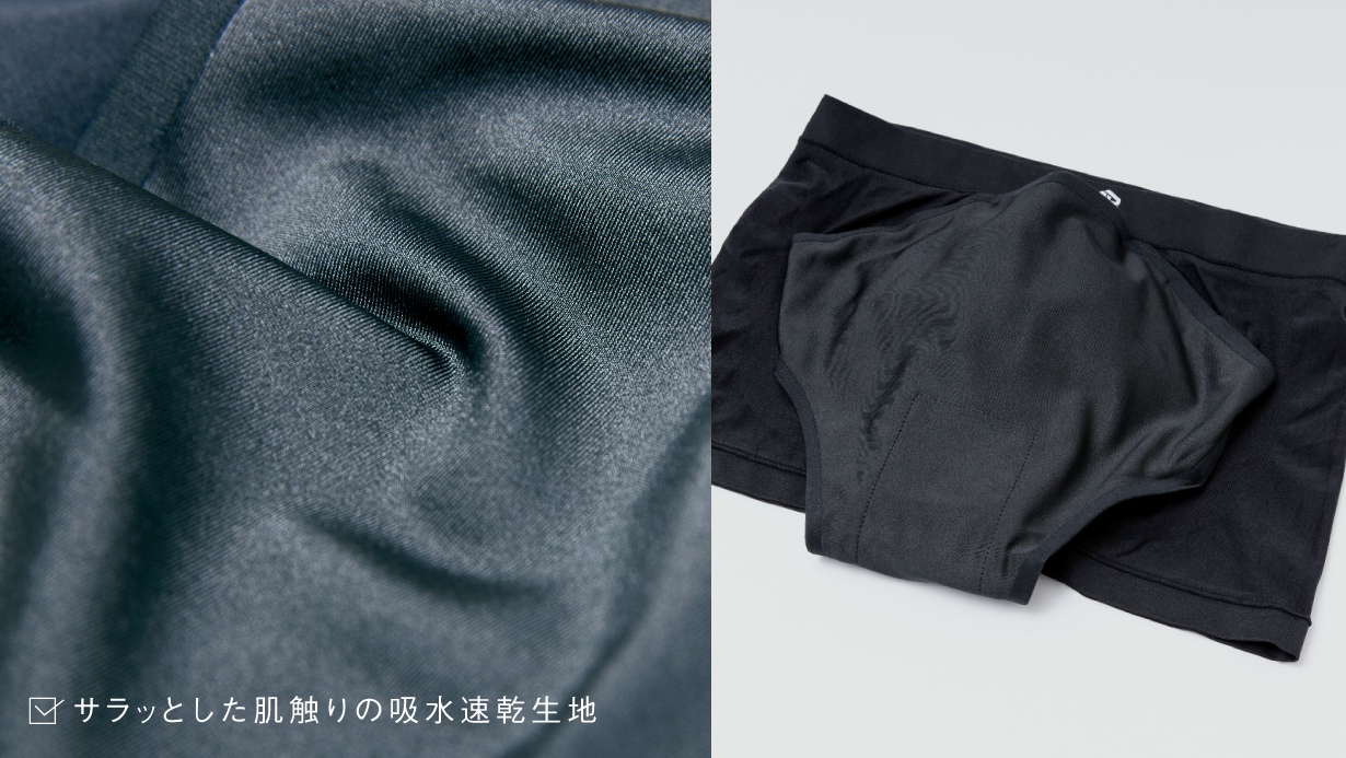 吸収体の肌側の生地には、高い吸水速乾性を備えた生地を使用。アクティブなシーンでも汗による不快なムレを軽減し、履いた瞬間の心地よさが持続するストレスフリーな設計に仕上げました。