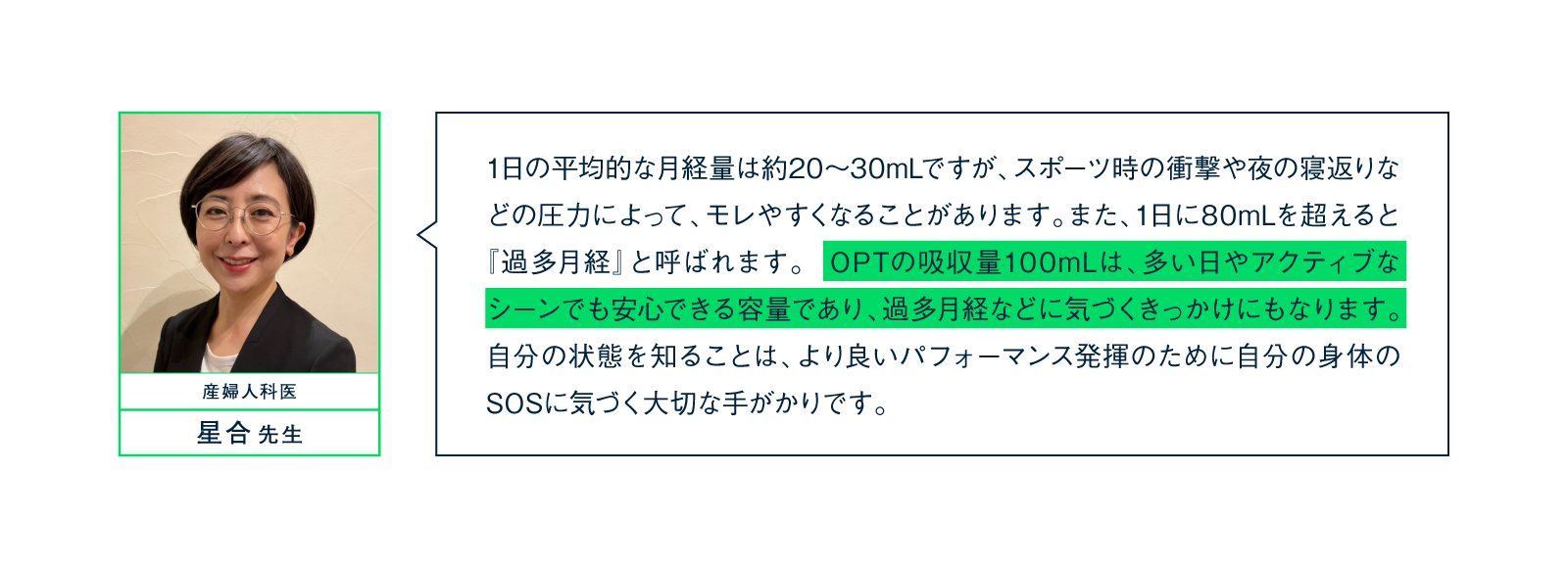寝返りをうったり足を大きく開いたりと、どんな激しい動きや姿勢でも安心して過ごせる吸水力を追求しました。多い日やアクティブなシーンでの心配ごとをサポートするだけでなく、自身の体調の変化に気づく大切な手がかりとしてもあなたをサポートします。